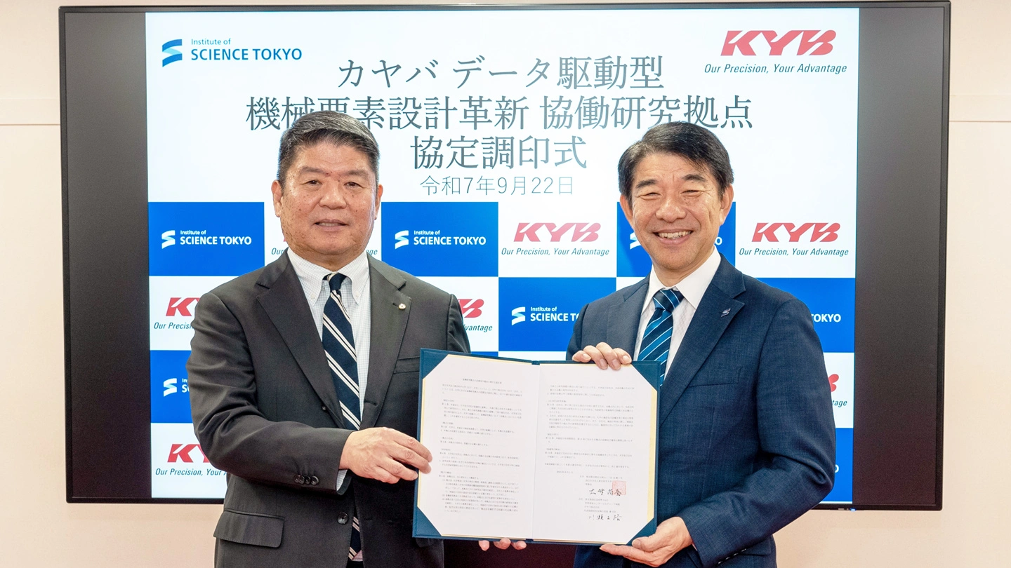 東京科学大学とカヤバ株式会社は、2025年9月1日に「カヤバ データ駆動型機械要素設計革新協働研究拠点」を東京科学大学すずかけ台キャンパス内に設置しました。
