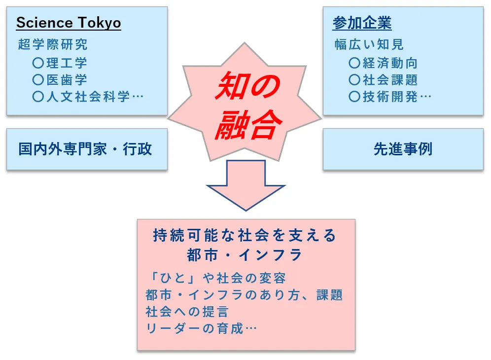 本プログラムは、人類が歴史上経験したことがない大きな変化の中で、Science Tokyoの多様な領域の「知」に加え、参加企業や広く社会の「知」を融合し、
