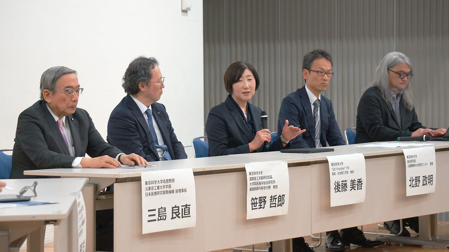 後藤美香教授(環境・社会理工学院)が、Science Tokyoが全学的に導入した「Visionary Initiatives(VI:ビジョナリーイニシアティブ)」と、その一領域である「GX Frontier」の取り組みを紹介しました。VIは「善き生活・善き社会・善き地球」を実現するための分野横断型の研究組織体制であり、学内外の境界を超えて社会課題の解決を目指すこと、GX Frontierでは、次世代エネルギー材料開発、国際研究連携、社会実装モデル構築など、カーボンニュートラル達成に向けた多面的な研究を推進していることについて説明しました。